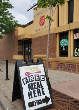 Meals served on the sidewalk on E Lake St., near E Lake St. main entrance door.